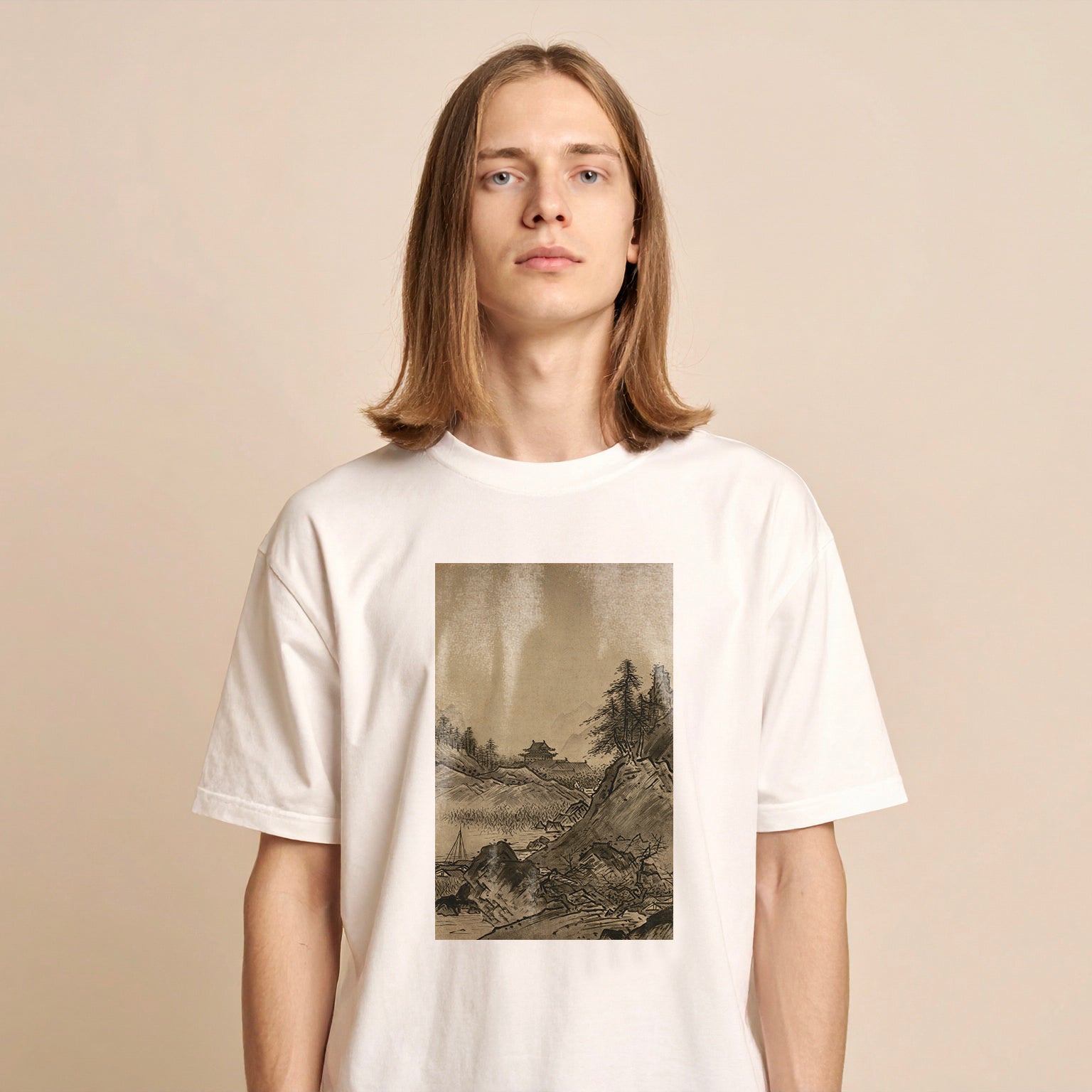 A masterpiece by Sesshū, a grand master of Japanese ink painting. The composition leads the viewer’s eye from the foreground to the background, highlighting the richness and contrast of ink tones as well as the boldness of his brushstrokes. Sesshū is also known for a famous legend in which he drew a mouse with his tears.